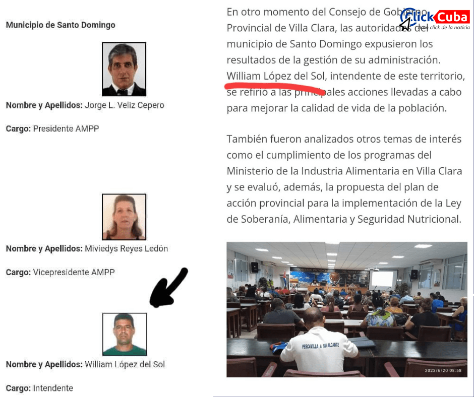 El perfil llamado La Tijera denuncia que William López del Sol, quien ha obtenido el Parole Humanitario para emigrar a Estados Unidos, es actualmente el intendente del gobierno municipal en Santo Domingo, Villa Clara. La publicación afirma que López del Sol ha sido un abusador que ha causado sufrimiento a personas humildes e indefensas en su localidad.