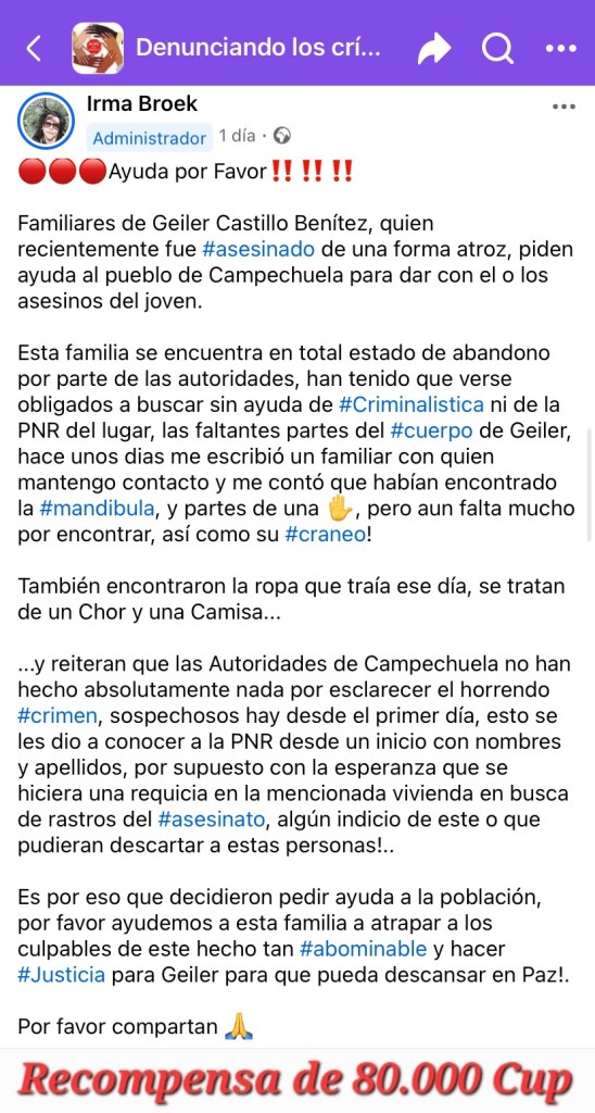 Hacen un llamado a la comunidad a compartir esta información y unirse en la búsqueda de justicia. Por favor, compartan esta noticia y ayuden a esta familia en su lucha para que Geiler pueda descansar en paz.