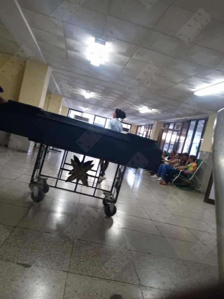 Al llegar a la Funeraria de Santiago, la familia fue ubicada en el pasillo de la Sala I2 por falta de capacidad. «Los muertos hasta en los pasillos», lamentó Yanelis.