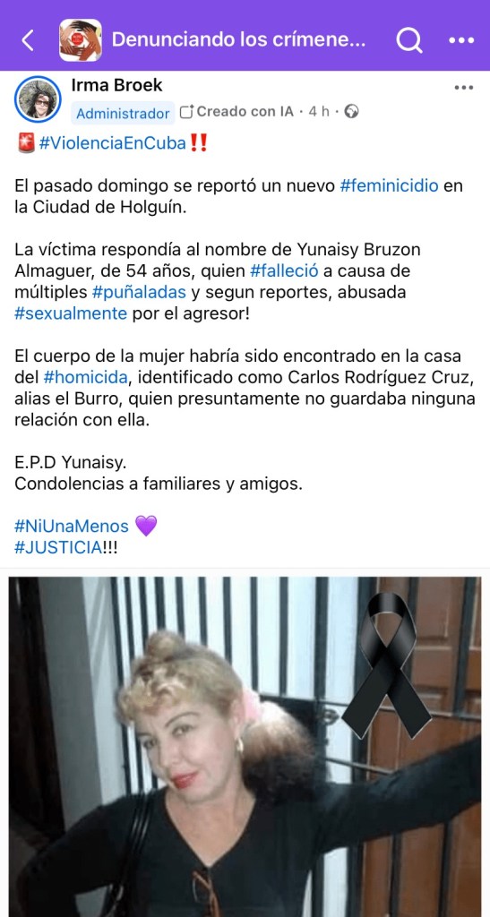 E.P.D Yunaisy. Que su muerte no sea en vano y que sirva como un llamado urgente a la acción para proteger a todas las mujeres en Cuba.