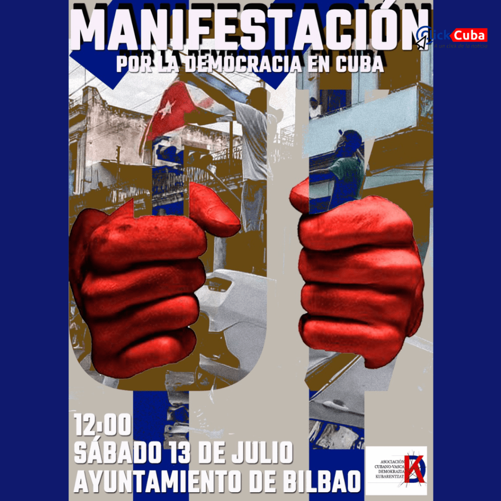 En solidaridad con el valiente pueblo cubano, la Asociación Cubano-Vasca Demokrazia Kubarentzat ha convocado una manifestación este sábado 13 de julio a las 12:00 frente al Ayuntamiento de Bilbao. Este acto busca rendir homenaje a aquellos que el 11J salieron a las calles a exigir sus derechos y denunciar las constantes violaciones de los derechos humanos perpetradas por la dictadura cubana.