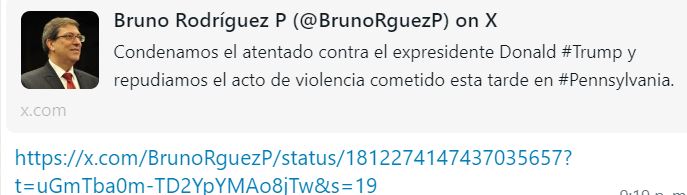 En su cuenta de X, Díaz-Canel expresó con el cinismo al que acostumbra la dictadura cubana. En su mensaje, Díaz-Canel habló de una «escalada de la violencia política» en Estados Unidos, mientras que bajo su sistema totalitario la violencia política es en realidad violencia de estado.