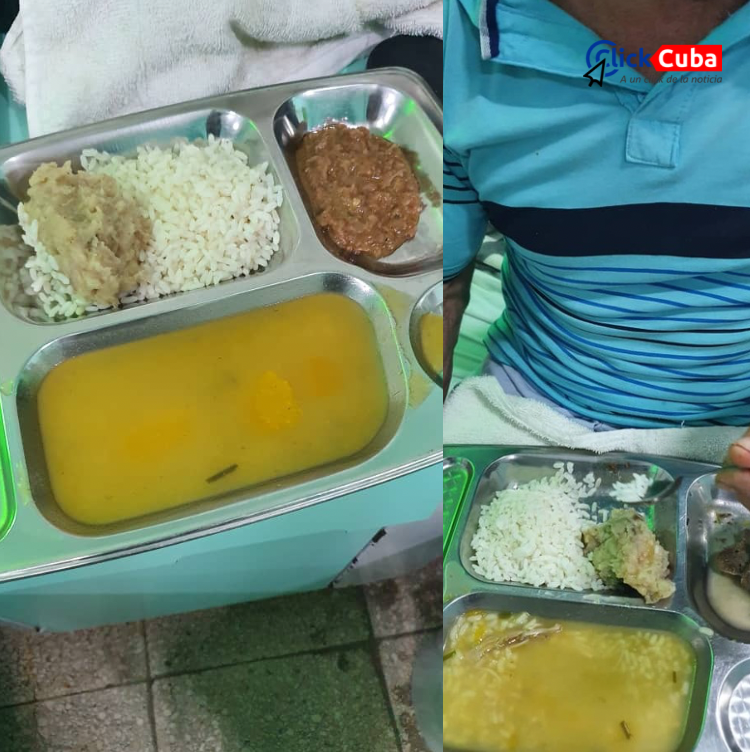 La alimentación en los hospitales debería ser parte esencial del tratamiento y recuperación de los pacientes. Sin embargo, lo que Máximo Sepúlveda recibe dista mucho de cumplir con estos criterios. Las imágenes evidencian platos de comida que carecen de valor nutritivo suficiente, con porciones mínimas y una presentación que denota descuido y falta de recursos. Está comida que recibe a diario en el ingreso, exponen la cruda realidad de la alimentación en los hospitales cubanos: pequeñas porciones de arroz, una escasa ración de carne, y un líquido que parece más agua teñida que una sopa nutritiva. Estas comidas, que no son adecuadas para ningún paciente, mucho menos para alguien que lucha contra una enfermedad tan grave, reflejan el estado crítico del sistema de salud en Cuba bajo un régimen que no garantiza ni lo más básico para sus ciudadanos. Para alguien en su condición, con un sistema inmunológico debilitado por el cáncer, esta dieta no solo es insuficiente sino que podría contribuir al deterioro de su salud.
