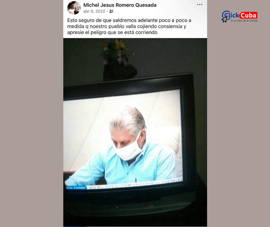 Otra publicación de abril de 2020 muestra a Romero Quesada alentando a los ciudadanos cubanos a tener confianza en la gestión del régimen ante la pandemia de COVID-19, exhibiendo una imagen de Díaz-Canel con un mensaje de esperanza y resiliencia.