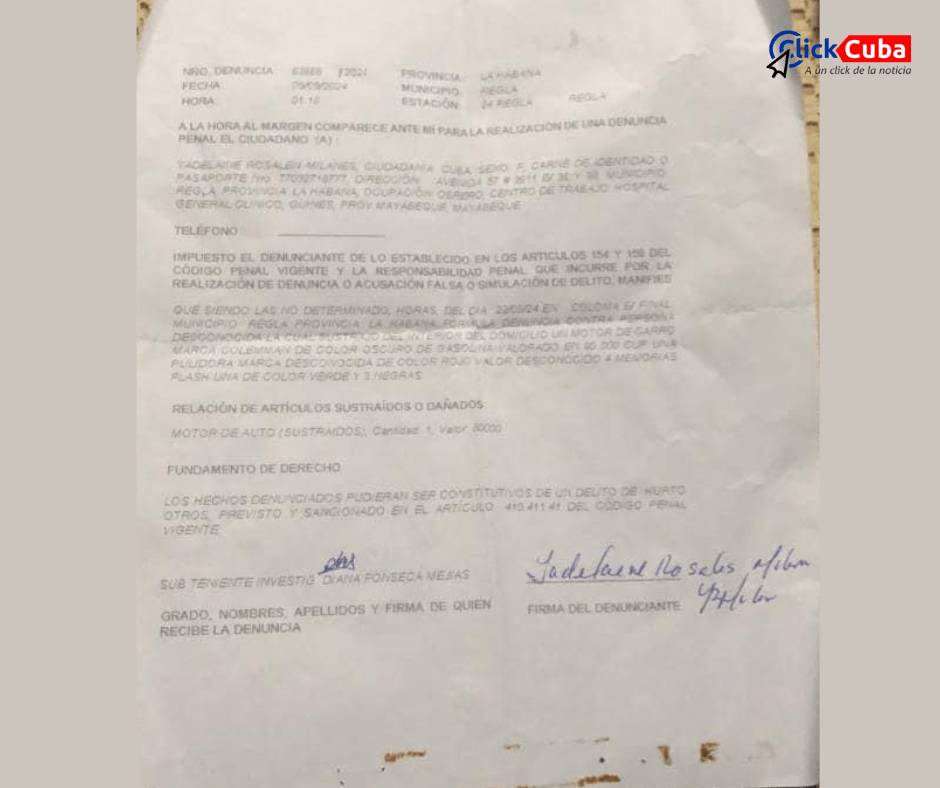 Al regresar a su hogar, Rosales descubrió que la ocupación se había realizado sin ninguna autorización oficial y sin respetar el debido proceso. En consecuencia, presentó una denuncia formal en la estación policial de Regla, registrada bajo el número 63666 de 2024. En su denuncia, menciona la violación de los artículos 380.1 y 381.1 del Código Penal Cubano, que penalizan las ocupaciones y registros ilegales. Sin embargo, a pesar de su esfuerzo por recuperar su hogar, no ha recibido respuestas concretas ni soluciones por parte de las autoridades locales.
