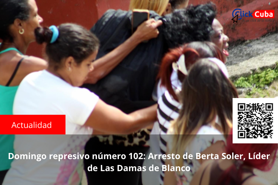 En un acto que marca el 102º “Domingo Represivo” consecutivo, las fuerzas paramilitares al servicio del régimen cubano detuvieron este domingo a Berta Soler Fernández, líder de la organización opositora Las Damas de Blanco y galardonada con el Premio Sájarov. El arresto se produjo a la 1:50 pm, mientras Soler abandonaba la sede oficial de la organización en el barrio de Lawton, en La Habana.