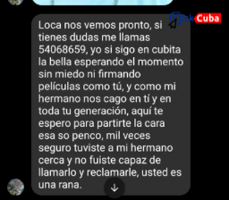La denuncia hecha por Yoel Acosta, fue respondida con una amenaza directa, presuntamente enviada por el hermano de Maresma, como muestra la imagen publicada junto a este artículo. “Así se ponen y para rematar mienten diciendo que eso es mentira, que su hermano era policía pero no represor y que desde el 2011 había dejado la policía. Eso es falso. Ese tipejo hasta el 2022 estaba trabajando como oficial de la Seguridad del Estado y jodiéndole la vida a las personas”, declaró Acosta tras recibir el mensaje amenazante.