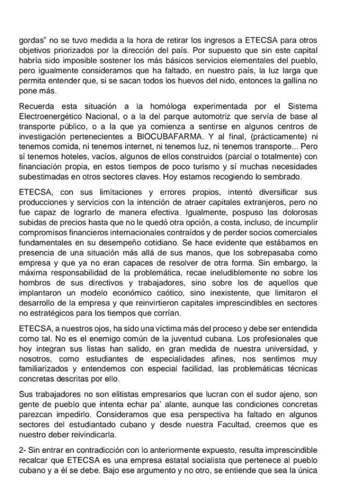 En su pronunciamiento, los estudiantes advierten que no aceptan una solución basada en el encarecimiento del acceso como única vía para recapitalizar a ETECSA. Rechazan las políticas de corte neoliberal que imponen cargas sobre una población ya agotada, y proponen en cambio una “resistencia creativa” que permita soluciones estructurales sin afectar a los más vulnerables.