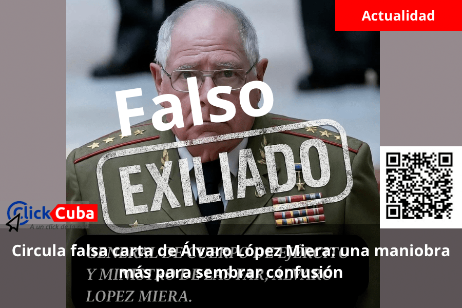 La carta, con lenguaje crítico hacia el régimen y apelando a la Constitución de 1940, ha sido compartida ampliamente, acompañada de una imagen de López Miera con la palabra “EXILIADO” sobreimpresa. Sin embargo, no hay ninguna evidencia creíble que respalde la veracidad del contenido ni de su autoría. Todo apunta a que se trata de una falsificación.