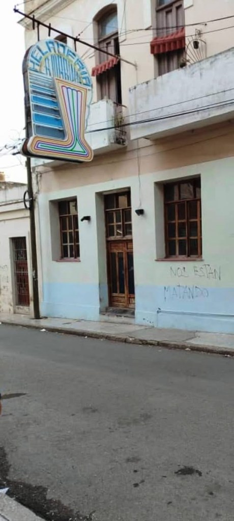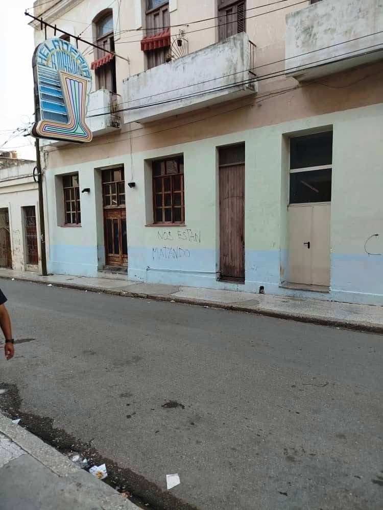 “Nos están matando” y “¿Hasta cuándo?” son algunos de los mensajes visibles en las fachadas de edificios, como se observa en las imágenes difundidas por la página de Facebook La Tijera. Los grafitis aparecieron en la intersección de las calles Martí y Aranguren, en pleno corazón de Regla.
