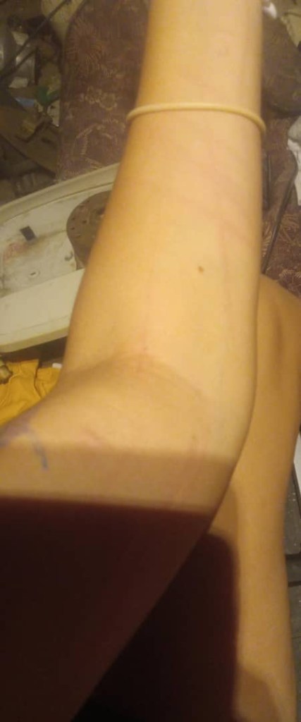 Las imágenes difundidas por Suárez muestran hematomas visibles en su brazo izquierdo, compatibles con los maltratos físicos que describe. Las marcas de presión, moretones y lesiones internas son prueba del uso de la fuerza.