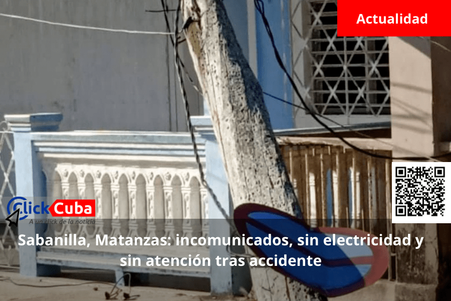 El poblado de Sabanilla, en la provincia de Matanzas, atraviesa una situación crítica tras el impacto de un ómnibus contra un poste eléctrico y una vivienda, hecho que dejó el tendido derribado en medio de la calle y provocó el aislamiento total de la comunidad.
