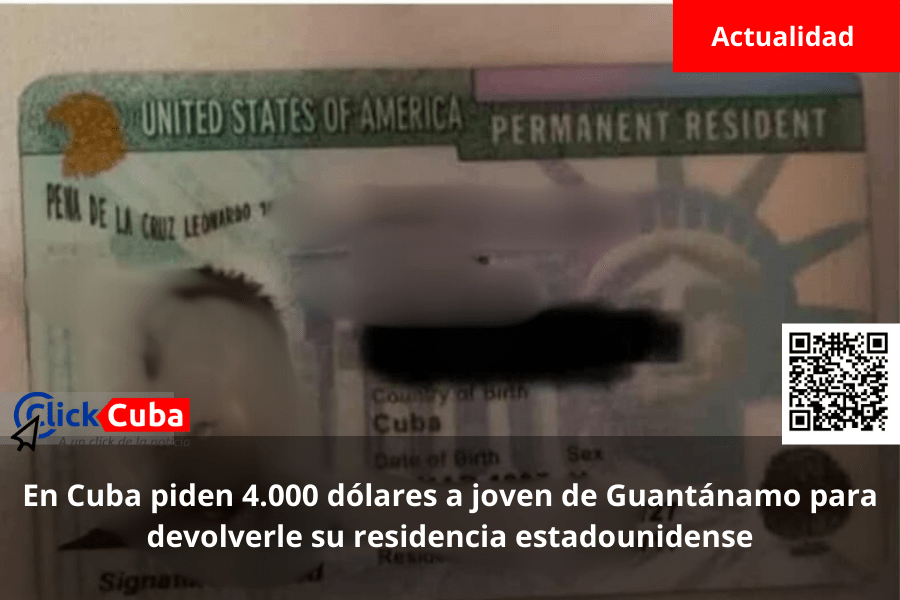 En redes sociales cubanas se ha hecho viral la denuncia de un caso que mezcla extorsión y vulneración de datos personales: un joven de Guantánamo, identificado como Leonardo Peña de la Cruz, conocido entre amigos como “Leo”, perdió su tarjeta de residencia permanente de Estados Unidos durante uno de sus viajes a la isla, y la persona que asegura haberla encontrado exige 4.000 dólares para devolverla.