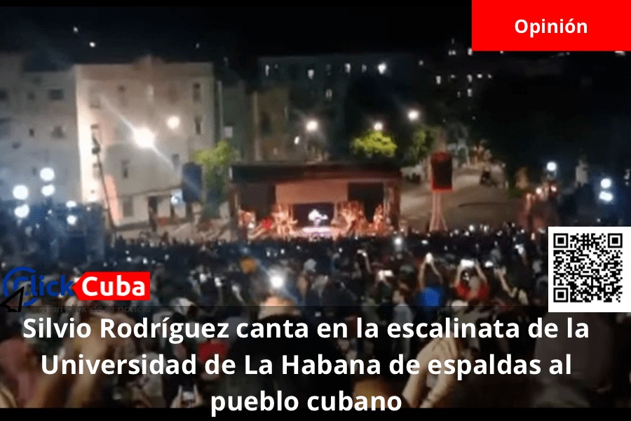 La noche de ayer la escalinata de la Universidad de La Habana fue escenario de un concierto del trovador oficialista Silvio Rodríguez, un evento presentado como un homenaje a los estudiantes que semanas atrás protagonizaron protestas contra el tarifazo impuesto por la empresa estatal Etecsa.