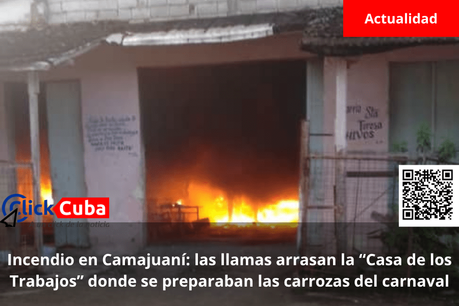 Incendio en Camajuaní: las llamas arrasan la “Casa de los Trabajos” donde se preparaban las carrozas del carnaval
