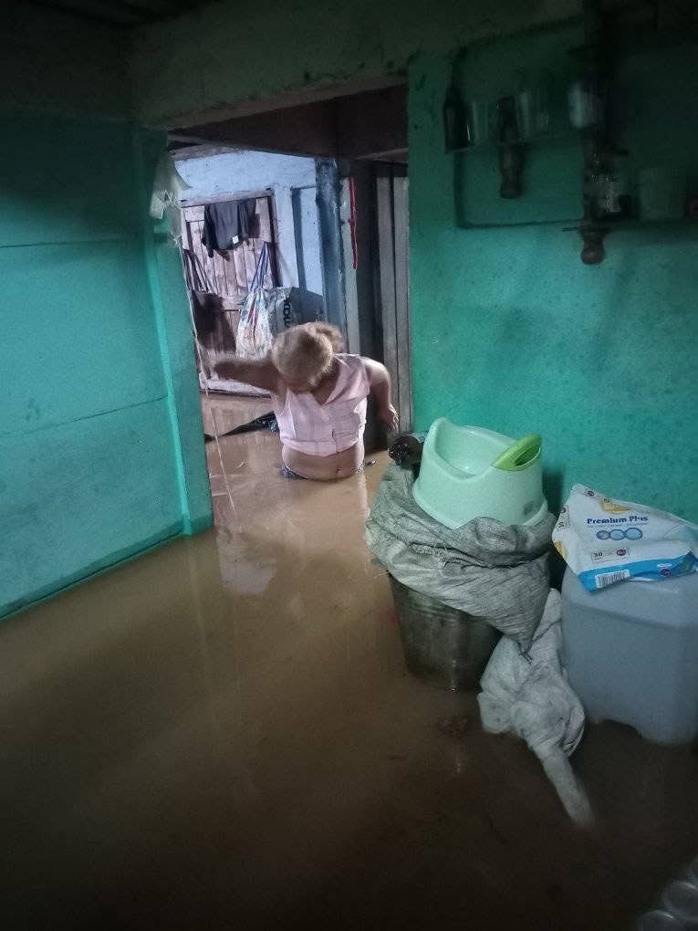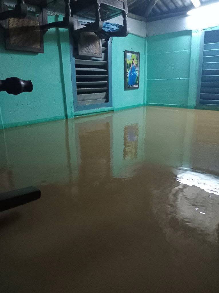 Las fotografías compartidas muestran hogares convertidos en lagunas: salas, cocinas y cuartos con el agua llegando a la altura de las rodillas, muebles levantados con prisas para evitar que se destruyan, electrodomésticos en riesgo, paredes mojadas, techos deteriorados y calles convertidas en ríos oscuros bajo la lluvia.