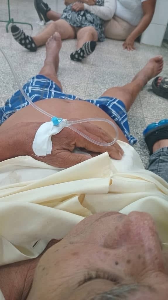 Las fotografías compartidas muestran a adultos mayores y pacientes con sueros colocados directamente sobre el piso, acompañados de familiares y personal de salud trabajando en un espacio saturado, deteriorado y sin mobiliario clínico disponible. La publicación, titulada “El último llamado — Después de esto, no hay excusas”, advierte que esta situación no debe interpretarse únicamente como una falta de recursos, sino como un síntoma del colapso de la infraestructura hospitalaria del país.