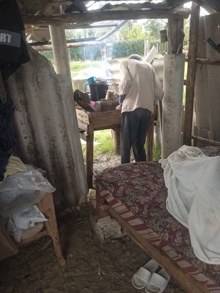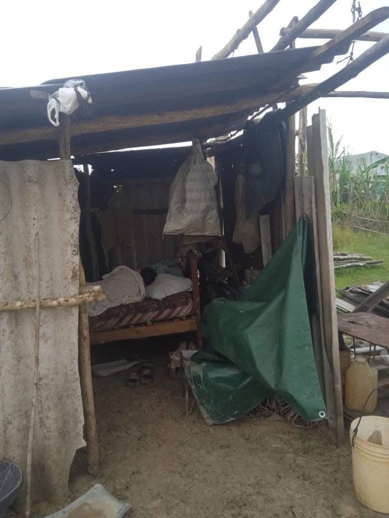 El huracán Melissa terminó de hundirlos. La casa donde vivían quedó destruida. Las imágenes muestran paredes improvisadas con planchas rotas, techos sostenidos por troncos, filtraciones por todas partes y camas apoyadas sobre bloques de cemento en un piso de fango. Allí, en ese espacio insalubre e indigno, duermen dos ancianos enfermos y completamente dependientes, expuestos a lluvias, mosquitos, frío, humedad y contaminación.