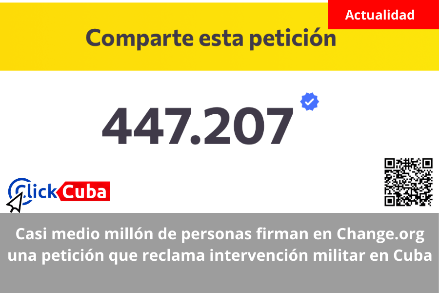 Una petición en la plataforma Change.org dirigida al presidente de los Estados Unidos, Donald J. Trump, ha reunido cerca de 447 000 firmas, reclamando una intervención militar “por razones humanitarias” para poner fin al régimen cubano e iniciar una transición democrática.