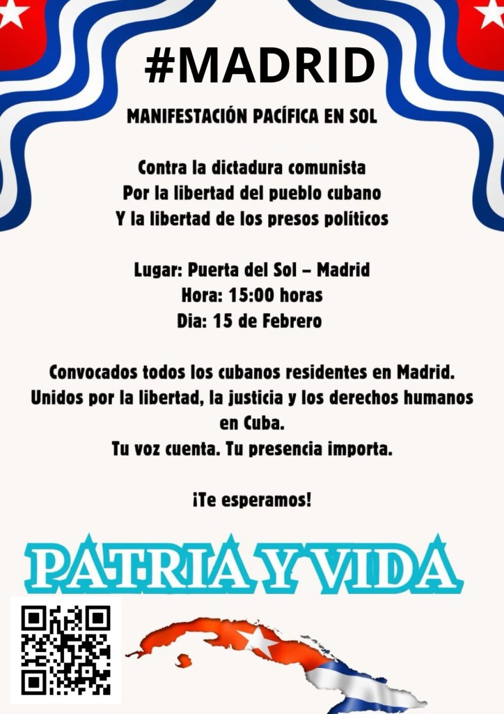 Desde el exilio, muchos cubanos sienten que la distancia no puede ser excusa. La cita en Madrid busca precisamente eso: unir voces, convertir la indignación en presencia, y dejar claro que Cuba merece algo más que sobrevivir. Merece libertad, justicia y un futuro que no esté hecho de apagones, miedo y cárceles para quienes se atreven a pensar distinto.