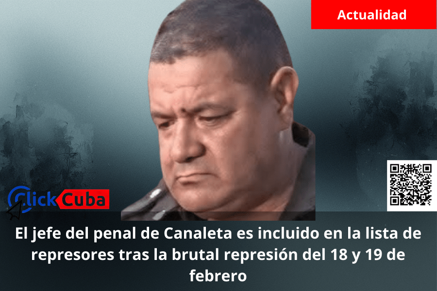 El mayor Noel Morales López, jefe de la prisión provincial de Canaleta, en Ciego de Ávila, fue añadido a la base de datos del proyecto Represores Cubanos como responsable de graves violaciones de derechos humanos cometidas durante la represión contra los reclusos los días 18 y 19 de febrero de 2026.