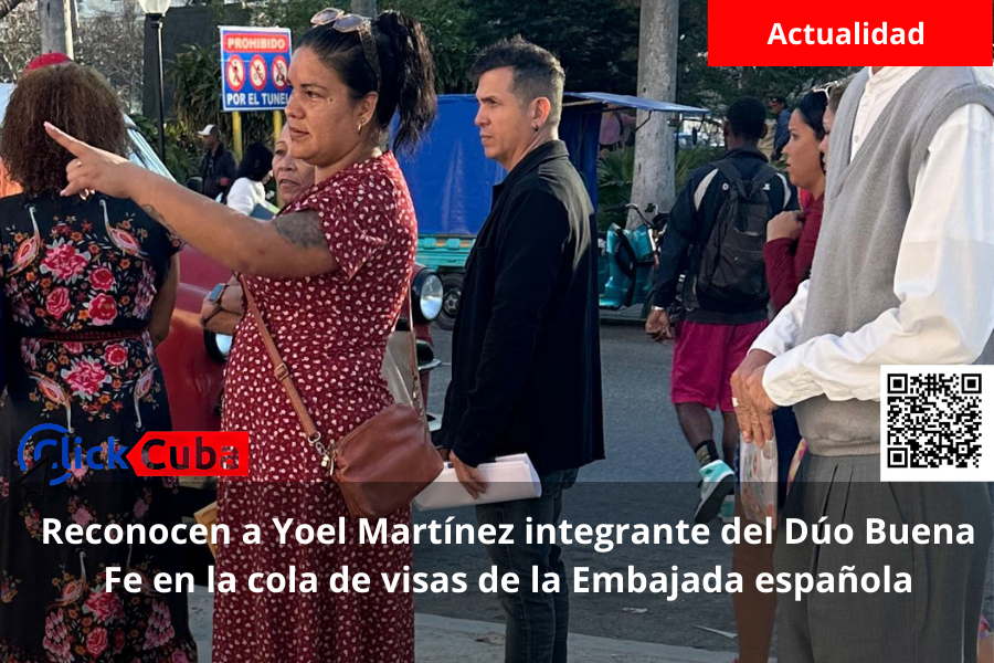 La escena ocurrió en plena vía pública, en la conocida cola para trámites de visado el pasado jueves 19 de febrero. Entre decenas de cubanos que esperan una oportunidad para salir del país, varios testigos aseguraron haber reconocido a Yoel Martínez, integrante del Dúo Buena Fe, realizando gestiones en la sección de visas.