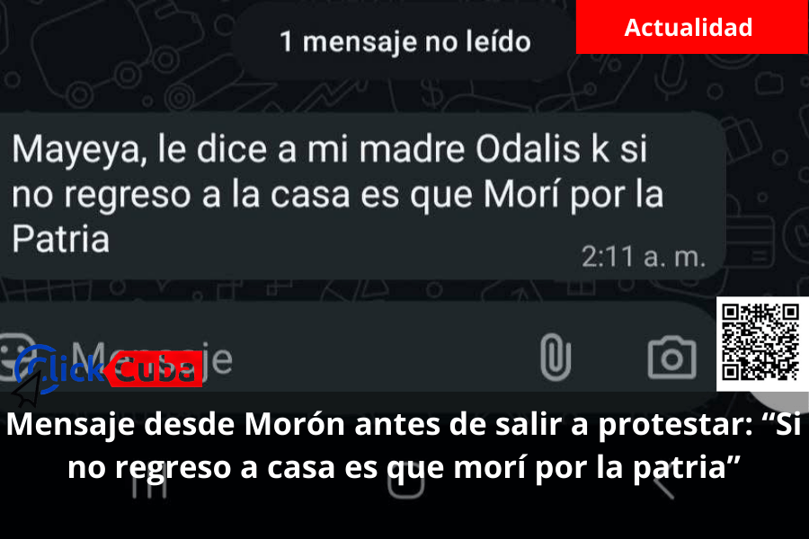 En medio de las protestas registradas en el municipio de Morón, en la provincia de Ciego de Ávila, un mensaje enviado por un joven a su familia ha comenzado a circular en redes sociales, reflejando el clima de tensión y determinación que se vive en las calles.