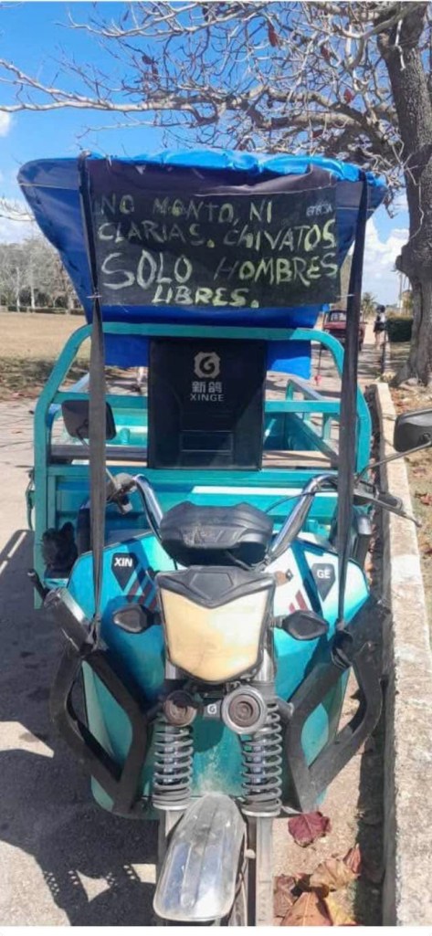 Detenido en San Antonio de los Baños tras exhibir en su triciclo el mensaje: “No monto ni clarias, ni chivatos, solo hombres libres”