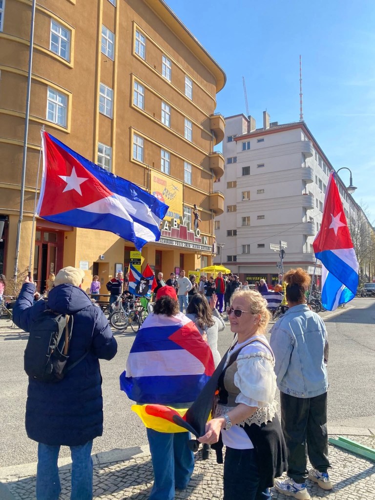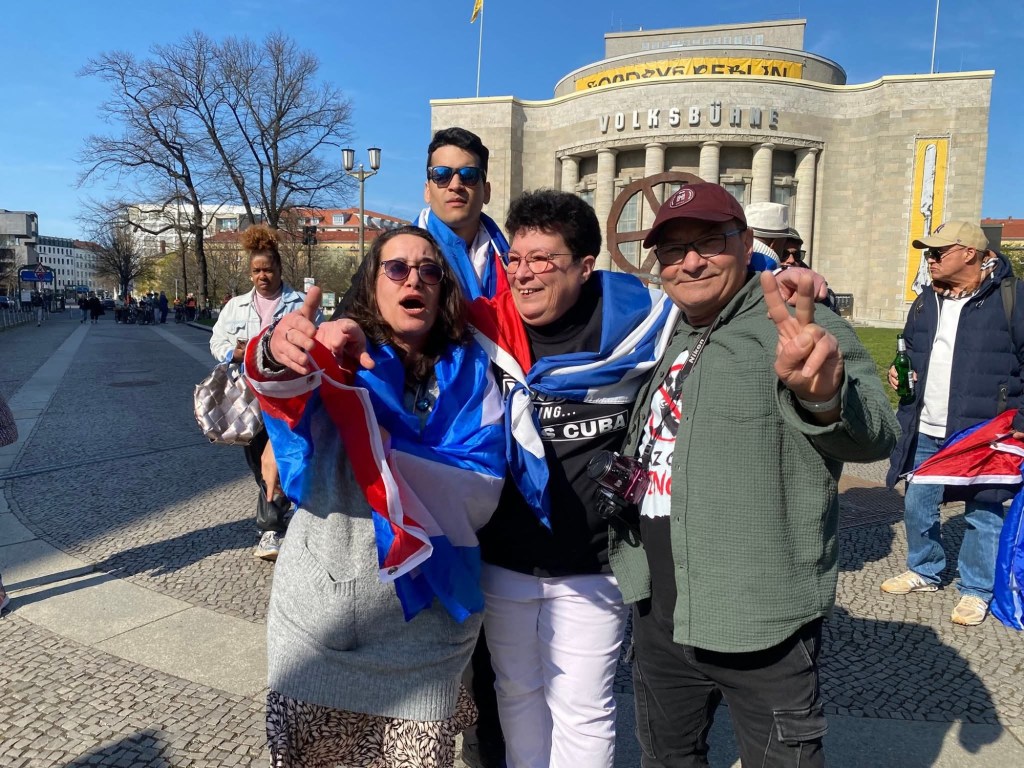 En el día de hoy, un grupo de cubanos residentes en Alemania ha llevado a cabo una protesta pacífica en la ciudad de Berlín para denunciar un acto organizado por diversas organizaciones de corte comunista, al que acusan de ser cómplices del régimen de La Habana y de contribuir a blanquear la realidad represiva que vive el pueblo cubano.