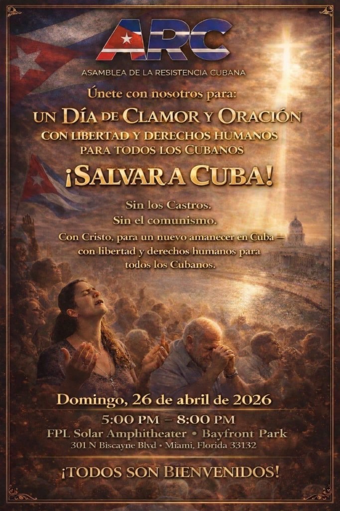 La Asamblea de la Resistencia Cubana (ARC) ha anunciado la celebración de un “Día de Clamor y Oración por Cuba”, una iniciativa espiritual y cívica que busca unir a los cubanos dentro y fuera de la isla en un acto de fe, esperanza y compromiso con la libertad.